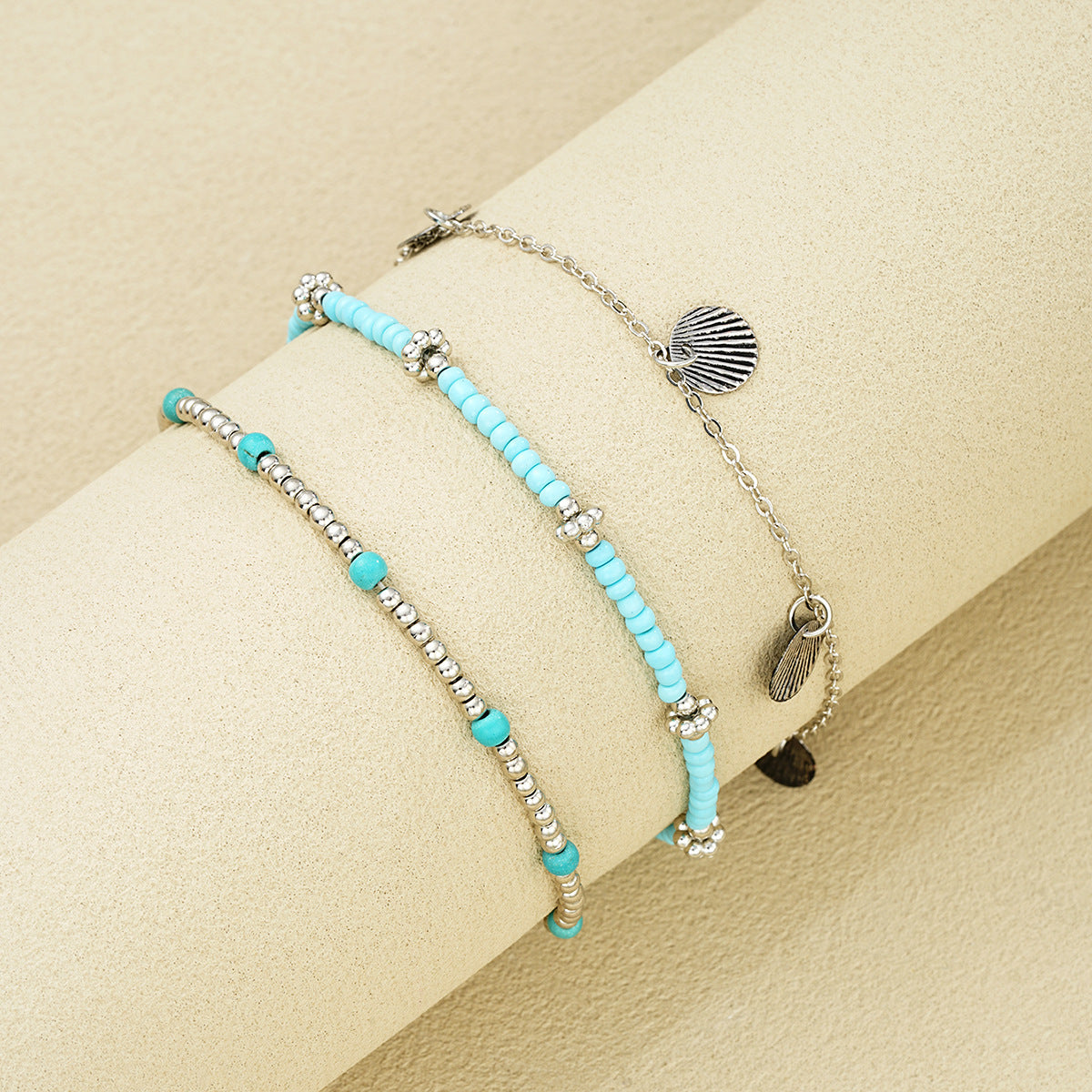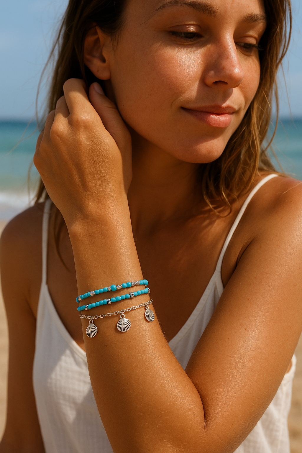 🌊 Sommerliches Armkettchen-Set – Muschelmotive & Türkisperlen